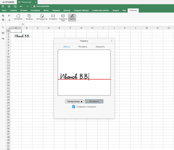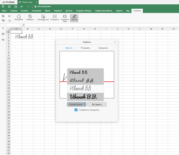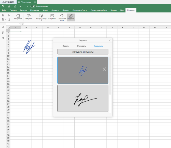 Плагин для Р7-Офис позволяет легко добавлять подписи и инициалы в документы, таблицы и презентации. Он предлагает три способа добавления образцов подписей: