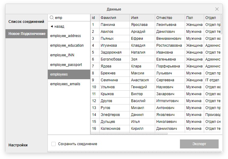 Утилита и плагин "Данные" для Р7 Офис представляет собой удобный инструмент для экспорта таблиц из баз данных в редактор «Р7 таблицы».