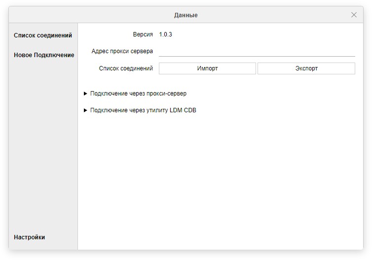 В этом разделе можно сделать импорт и экспорт каталога соединений в формате JSON для более удобного обмена настройками между пользователями.